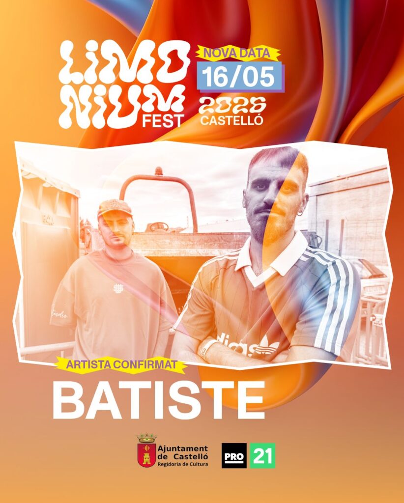 L’Ajuntament de Castelló ha anunciat una nova incorporació al cartell del Limonium Fest 2026, que se celebrarà el pròxim 16 de maig al municipi. El festival comptarà amb l’actuació de Batiste, artista local que se suma a aquesta tercera edició.