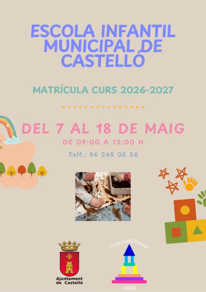 Obri el període de matrícula per a l’Escola Infantil Municipal de cara al curs 2026-2027. Les famílies interessades podran presentar les sol·licituds del 7 al 18 de maig, en horari de 9:00 a 13:00 hores.