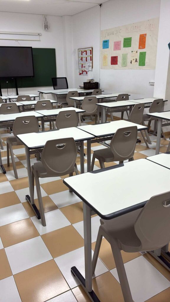 Aquesta actuació ha consistit en la incorporació de nou equipament, concretament 25 taules i 25 cadires per a l’alumnat, així com una taula per al professorat i dues pissarres, adaptant així l’aula a les necessitats actuals del centre.